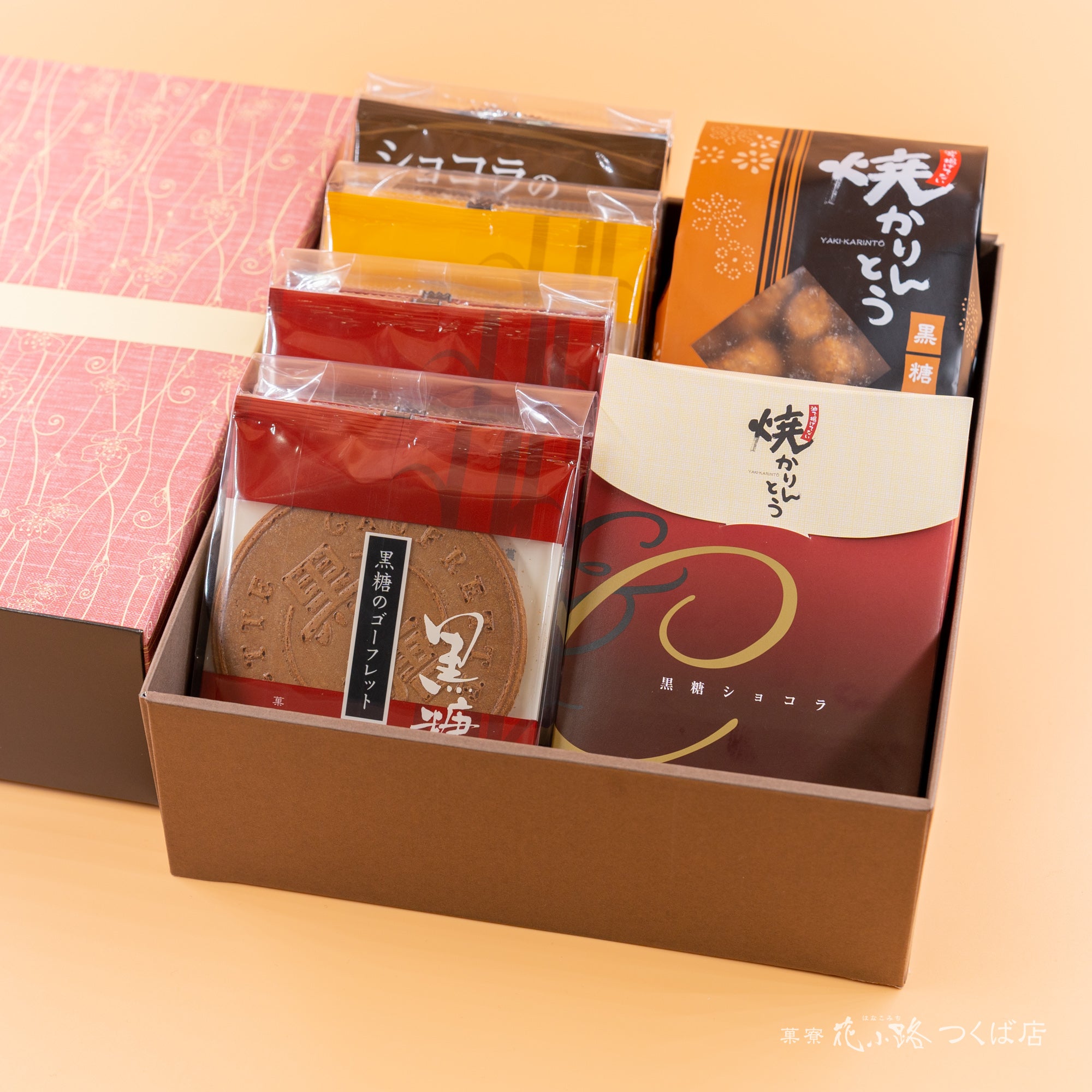 花小路の人気定番商品、焼かりんとう1袋と季節限定商品「ショコラ焼かりんとう」。そして4種類のゴーフレットを入れた詰め合わせです。